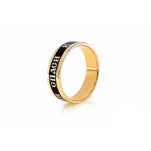 Черная эмаль на шинке колечка - немаловажная деталь, которая удачно оттеняет золотой блеск надписи «Спаси и сохрани» и делает эти слова еще более четкими, рельефными и тем самым более значимыми.