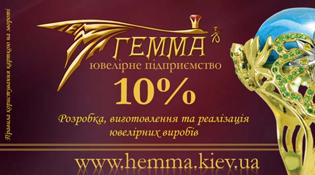 Совершая покупки в интернет-магазине "Гемма" либо на ювелирной выставке по всей территории Украины, каждый покупатель получает дисконт-карточку 5% или 10%.