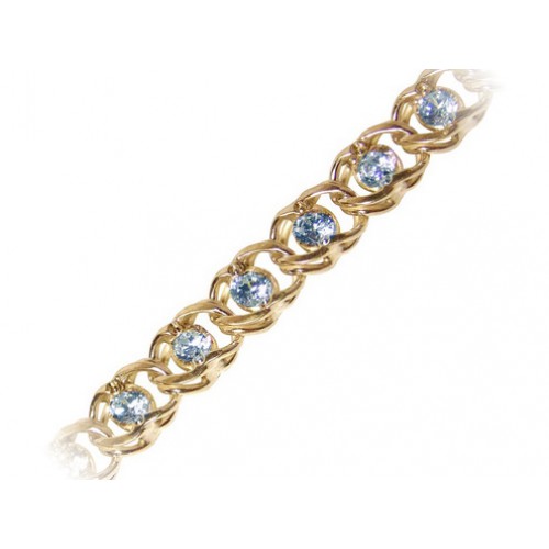 Золотая цепочка Арабский бисмарк с голубыми топазами ил-005