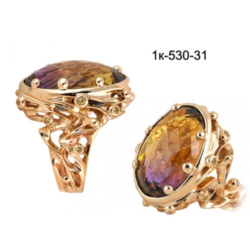 Золотое кольцо Времена года с раухтопазом. к-237-21